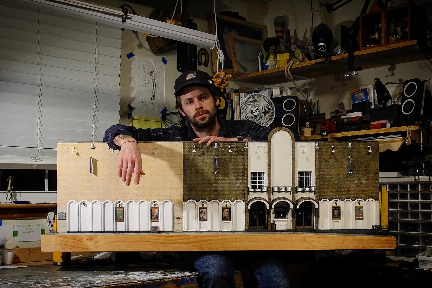 One miniature will eventually be on display at the Belcourt Theater. It's the historic building as it looked before its 2016 renovation.