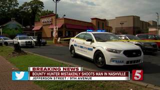 NASHVILLE, Tenn. - A bounty hunter shot the wrong man at a Nashville fast food restaurant.