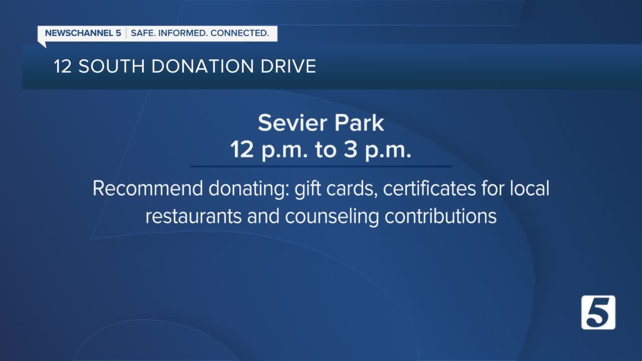 The 12 South neighborhood is hosting a donation drive there from noon to 3:00 p.m. Organizers recommend donations of gift cards, gift certificates from local restaurants, and money donations to help the families, students, and staff get the counseling services they need to process their grief.