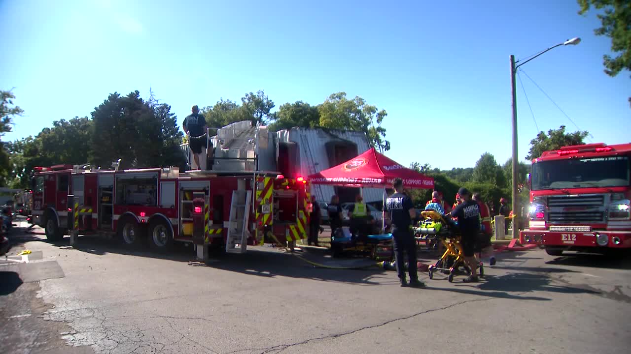 NASHVILLE, Tenn. (WTVF) — At Highland on Briley Apartments in Donelson, a fire destroyed an entire unit of homes Saturday.