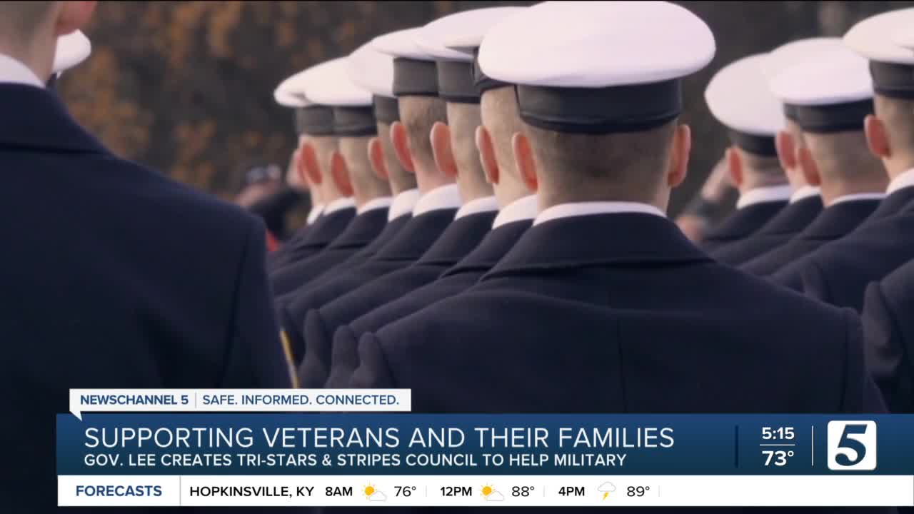 Through Executive Order 102, Governor Lee has reconstituted an existing council as the Tri-Stars and Stripes Council. This group will work to develop strategies that will better serve and support members of our armed forces. It'll help with services like veteran transition and employment, workforce development and essential resources for military families.