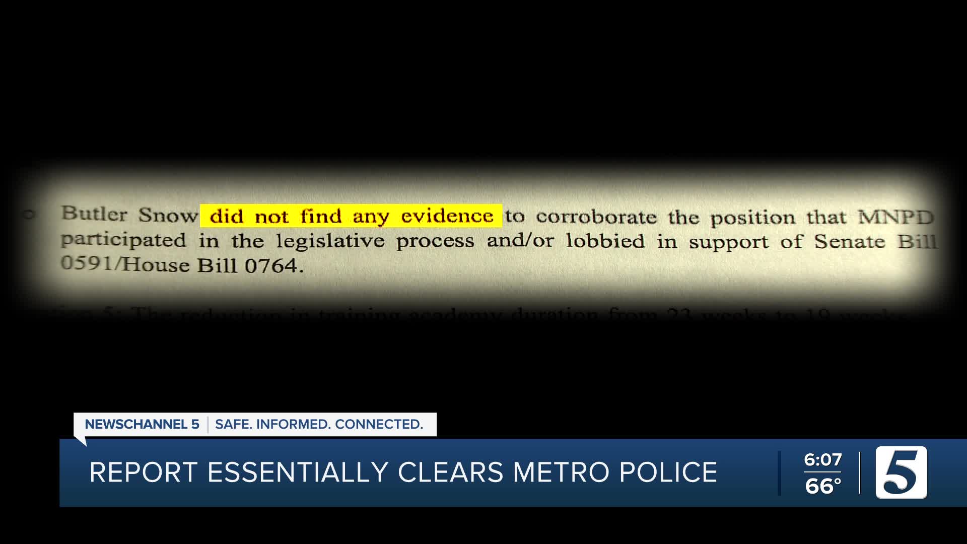 Both the Metro Legal Department and Metro Police Department said they appreciate the thoroughness and professionalism of the Butler Snow team that worked on the investigative report.