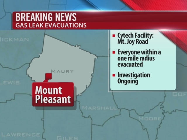 Emergency responded to the leak near the area of Cytec on Mt. Joy Road. Officials with the Maury County Fire Department said a major gas line ruptured in the area.