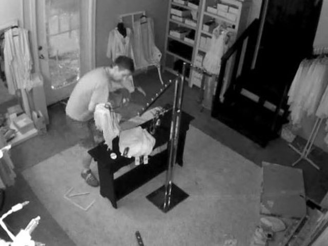 The suspect allegedly burgarlized a women’s clothing store early Sunday morning.