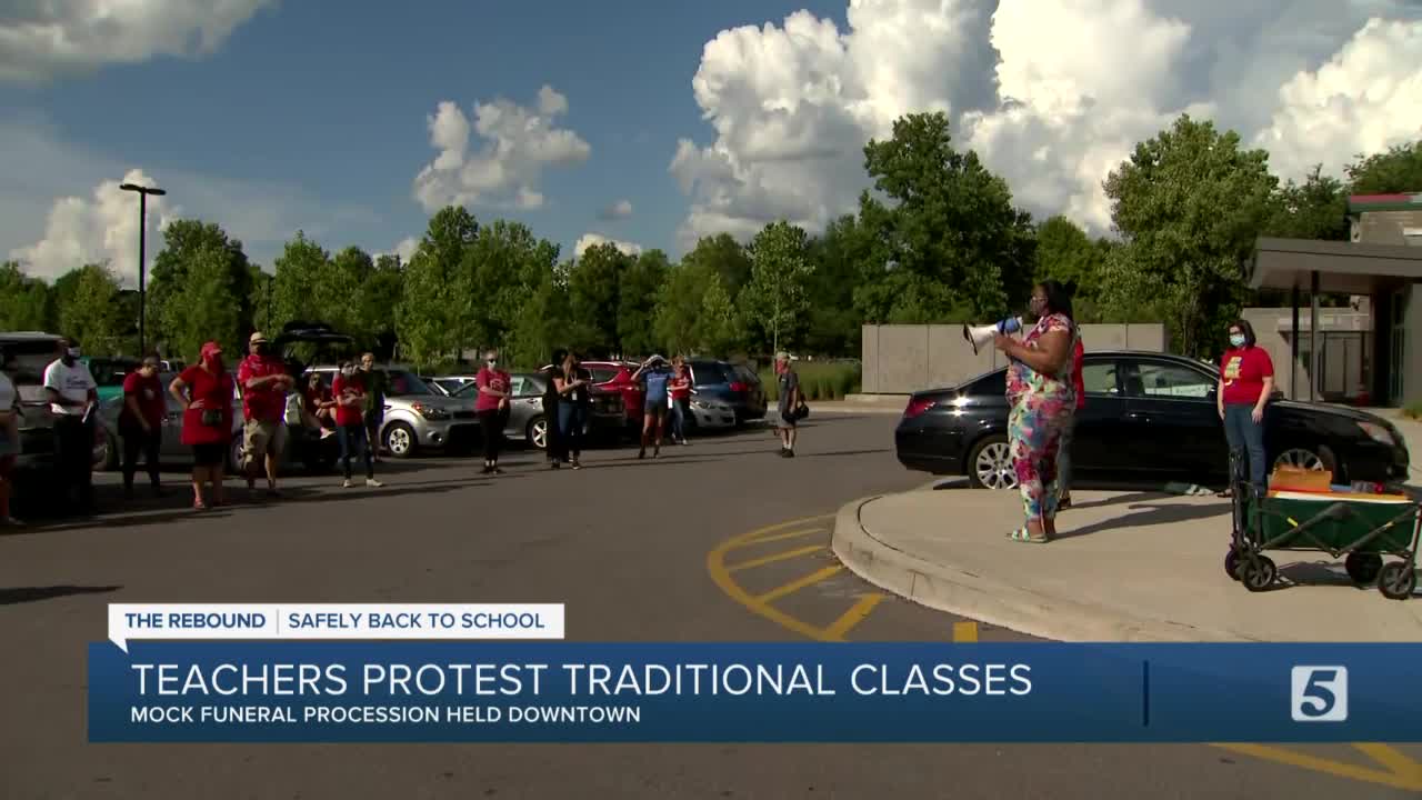 NASHVILLE, Tenn. (WTVF) — Some Middle Tennessee teachers who are concerned about schools opening safely participated in a mock funeral procession to bring attention to the issue.