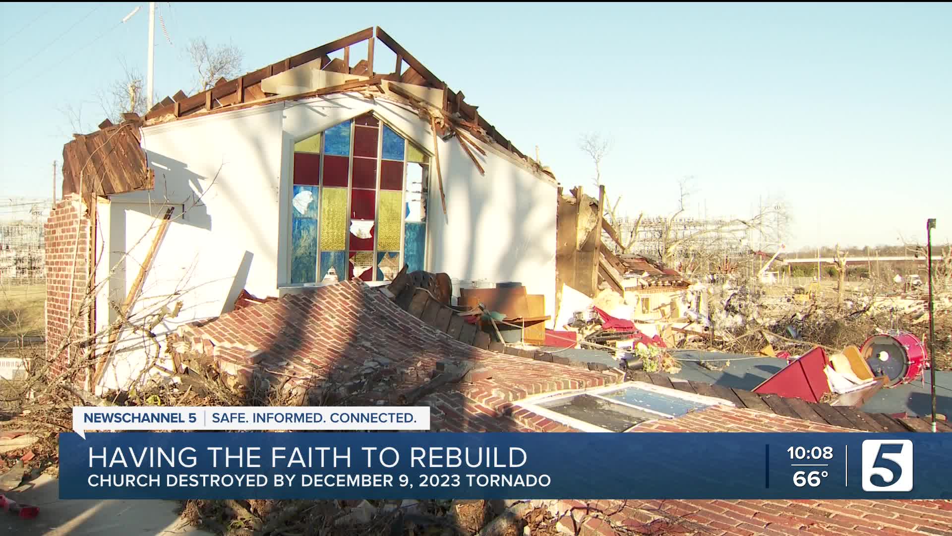 NASHVILLE, Tenn. (WTVF) — A small Nashville-area church destroyed by tornadoes two years ago continues its mission of faith and service while working to rebuild its permanent home.
