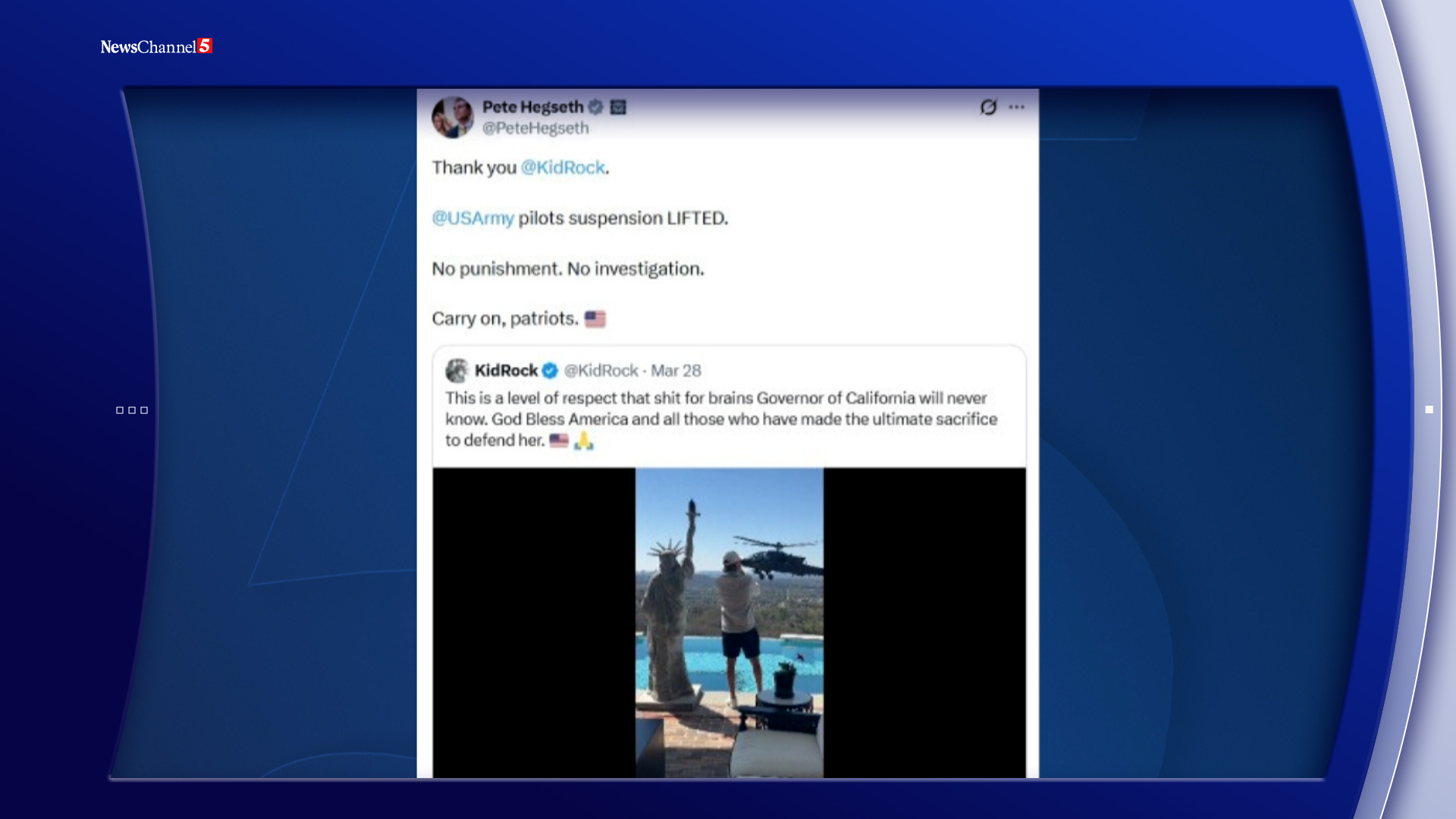 Hegseth lifts suspension of Army helicopter crews involved in Kid Rock, 'No Kings' flybys