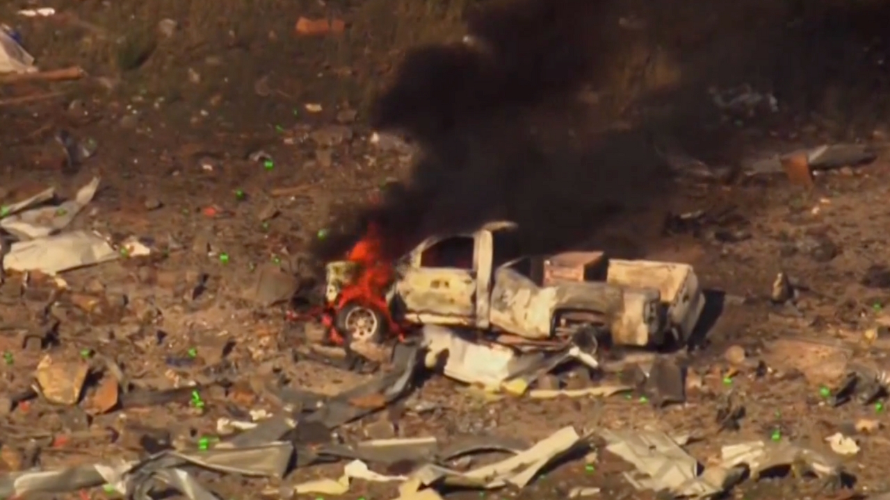 They say building “six” on the property of Accurate Energetic Systems is what exploded Friday morning, leaving behind debris that was still on fire when Sky5 flew above.