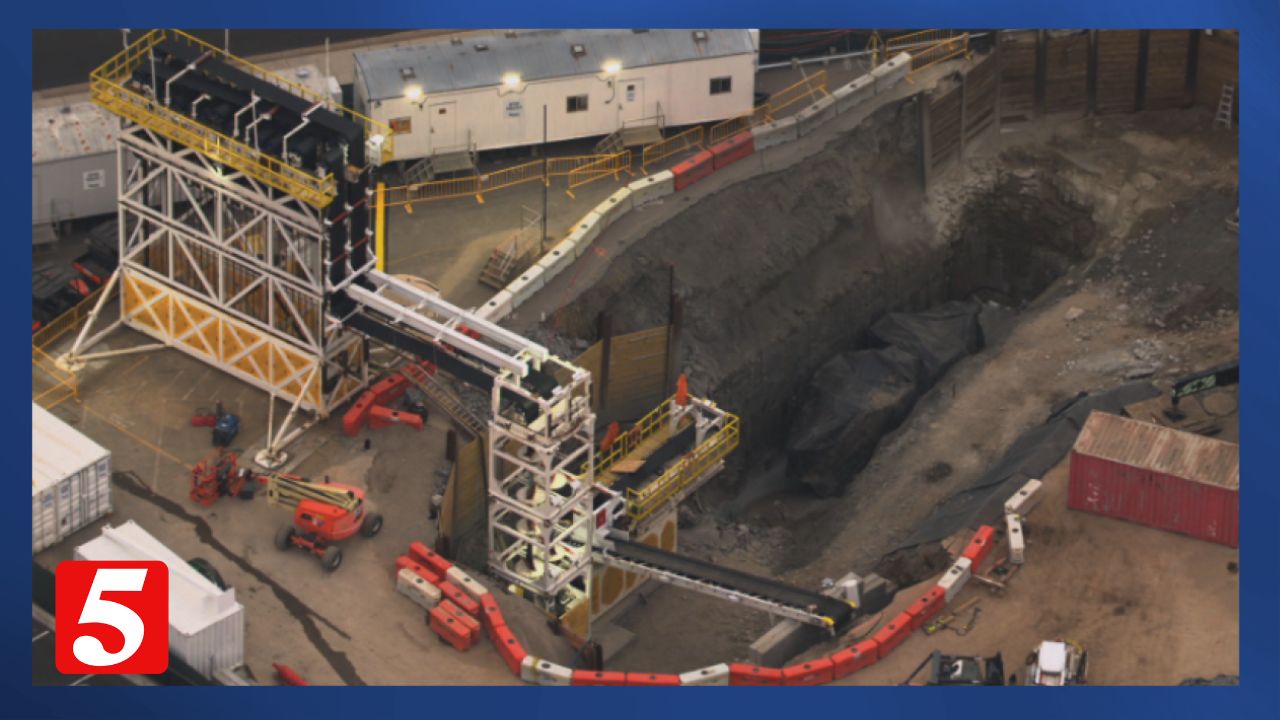 The Boring Company's Music City Loop project has transformed from a green fence to a massive construction site, marking significant progress since July.