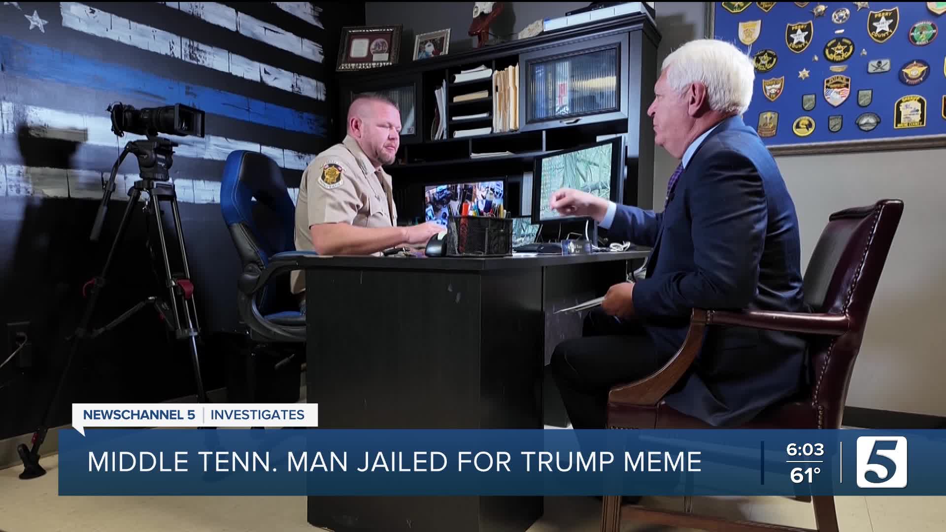 LINDEN, Tenn. (WTVF) — A Middle Tennessee sheriff is defending the arrest of a man who posted an online meme quoting President Donald Trump.