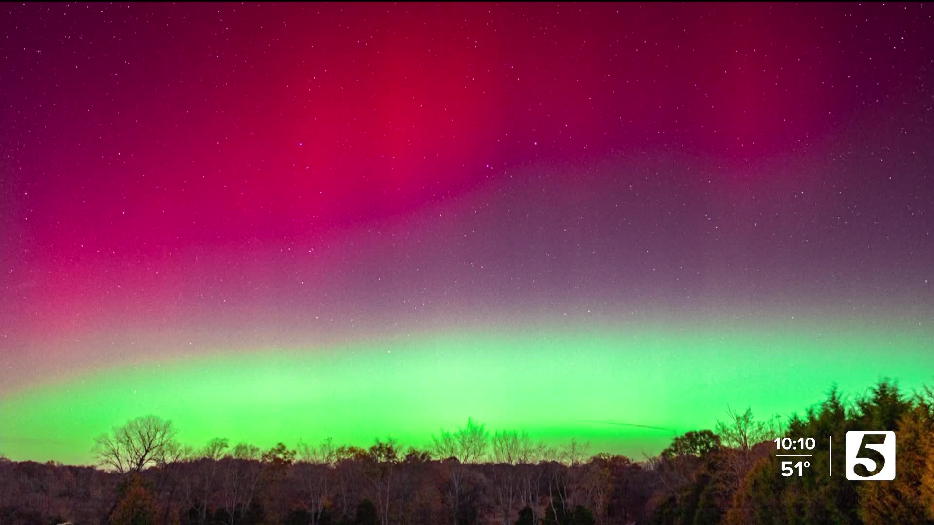 MURFREESBORO, Tenn. (WTVF) — The aurora borealis graced the landscape here in the Mid-State this week, sending many running for their phones or marveling at the rare event.