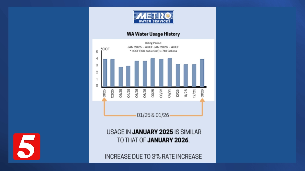 If you see a spike in your bill, graphs Metro Water Services shared can help you figure out what happened. If the bill shows similar usage as last January, it's likely the rate hike that's to blame. If usage went up a bit, it's likely dripping faucets. And if usage went way up, it's likely a leak or break.
