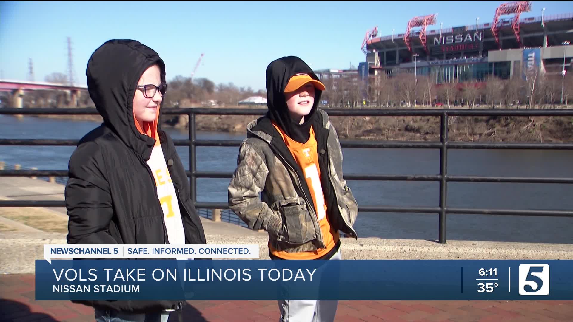 Brayden and Raelynn Hiett traveled from Altamont to Nashville to watch the University of Tennessee Volunteers take on the University of Illinois Fighting Illini, marking several significant firsts for the multi-generational group of fans.