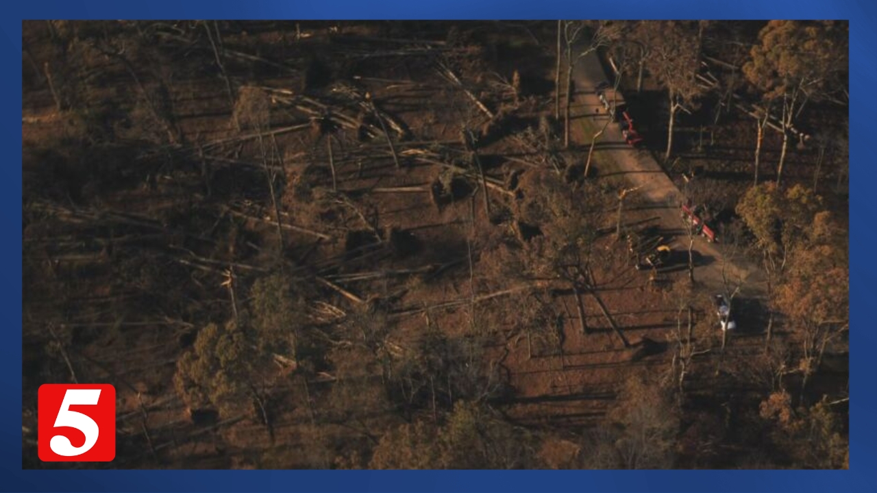 BURNS, Tenn. (WTVF) — Strong thunderstorms that swept through Middle Tennessee on Friday evening left Montgomery Bell State Park in Burns with extensive damage, forcing staff into a race against time to clear trails before a major December fundraising event.
