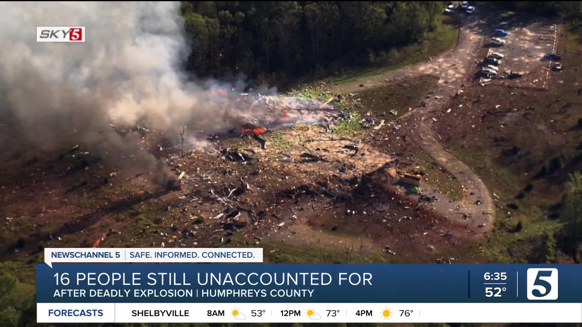 As of 11 a.m. CT, officials report no new updates on fatalities or injuries, and 16 individuals remain unaccounted for. The Humphreys County and Hickman County Sheriff’s Offices, along with the ATF National Response Team and Fort Campbell Explosive Ordnance Disposal Team, continue to lead operations on the ground.