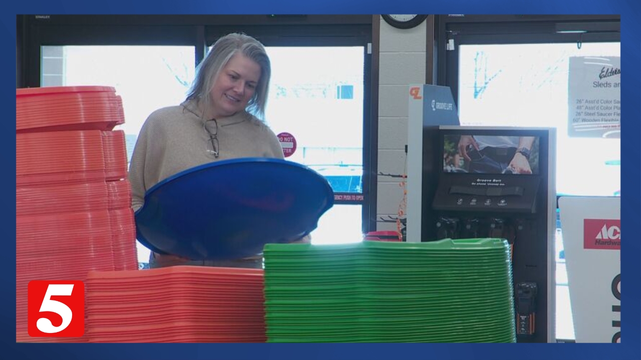 MURFREESBORO, Tenn. (WTVF) — A Murfreesboro hardware store has been bustling with activity as Middle Tennessee residents prepare for an approaching winter storm, with customers stocking up on everything from de-icing salt to sleds.