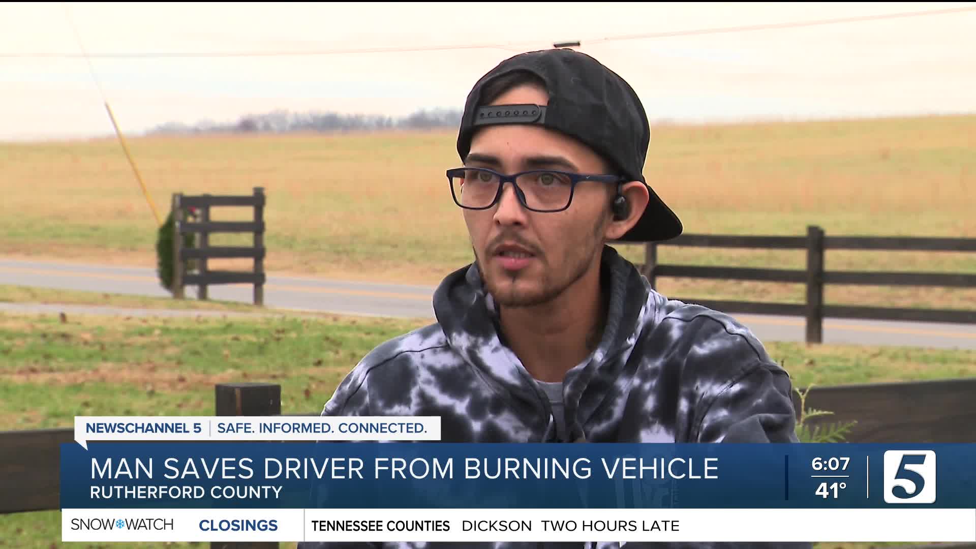 RUTHERFORD COUNTY, Tenn. (WTVF) — A Bedford County man is being praised by his community for pulling a driver to safety after a fiery crash along I-24 East over the weekend.