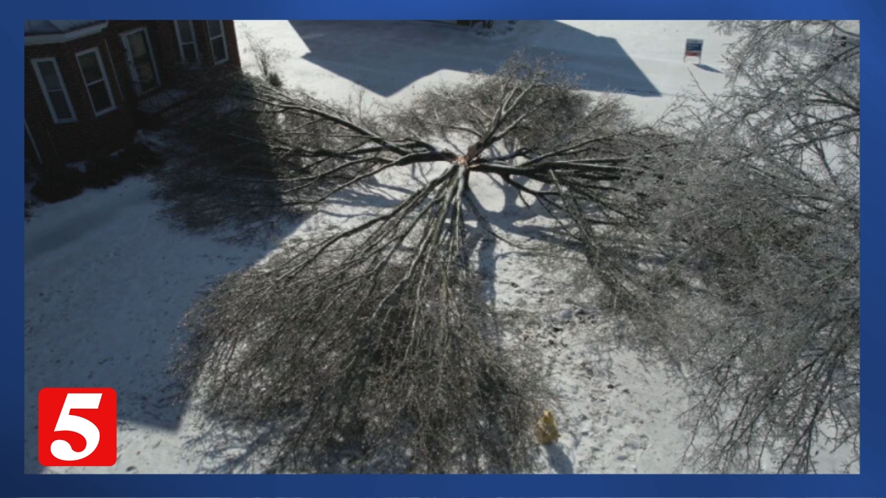HENDERSONVILLE, Tenn. (WTVF) — In Hendersonville, Crystal Brown discovered the tall tree in her front yard split into thirds and collapsed after the snow and ice storm this weekend.
