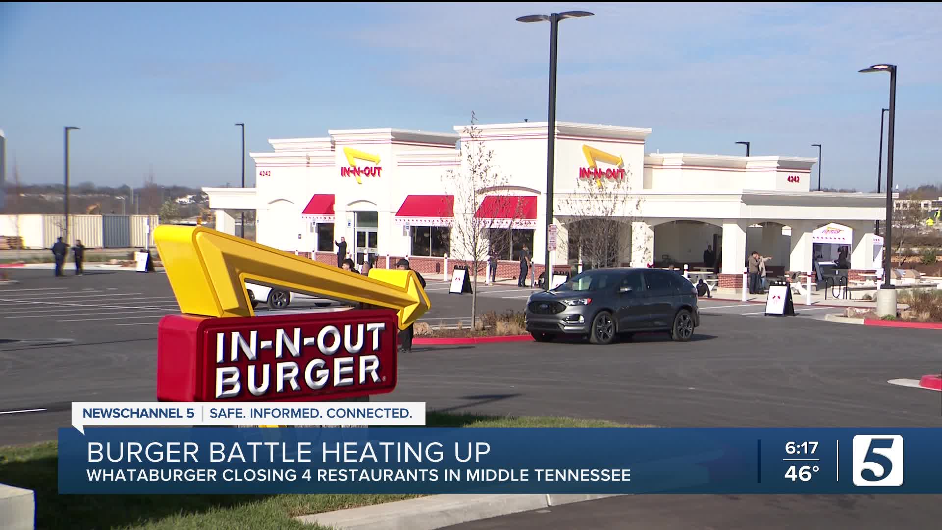 Middle Tennessee’s fast-food landscape is shifting as In-N-Out Burger opens its first Tennessee locations the same week Whataburger prepares to close four of its restaurants across the region, next week.