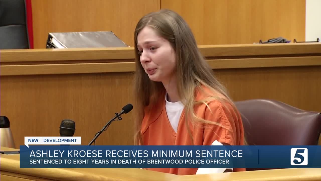 FRANKLIN, Tenn. (WTVF) — Ashley Kroese, the woman convicted of killing a Brentwood police officer, has been sentenced to 8 years in prison.