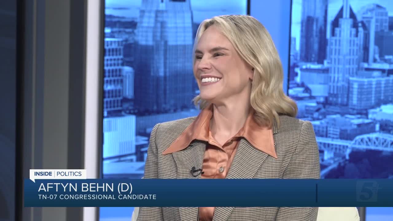 NASHVILLE, Tenn. (WTVF) — Democratic Primary Winner Rep. Aftyn Behn will face Republican Matt Van Epps Dec. 2nd in the General Election for U.S. Representative for theTN-07 Congressional District. Aftyn Behn returns to Inside Politics to answer more questions from host Ben Hall. Behn touts her campaign as "grassroots energy and not taking Corporate PAC money." She considers herself an angry social worker who will fight for Tennesseans. Behn said, "This race is not about left vs. right but top vs. bottom." She is running to "make life affordable for Tennesseans and reverse cuts from the Big Ugly Bill." Behn says her main priority if elected will be increasing wages, decreasing costs and ensuring and improving our quality of life in Tennessee. She will work to bring back ACA Marketplace subsides for over 600,000 Tennesseans, restore TennCare, and roll back tariffs that are squeezing Tennessee farmers to bankruptcy. Behn says, "If you think things are going well, I'm not your candidate. If you are upset with the cost of living and the chaos of our federal and state government, then I am your candidate because I will go to Washington to fix it. "
