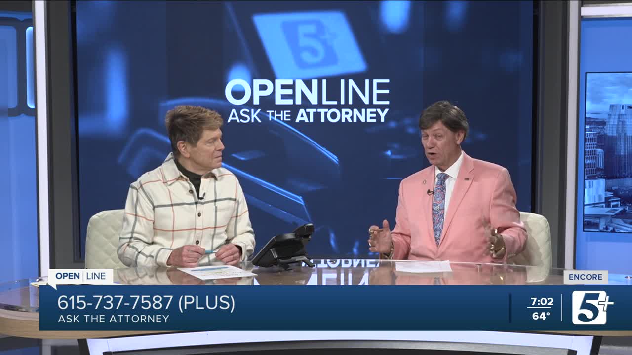 NASHVILLE, Tenn. (WTVF) — Attorney Kevin Kennedy has been practicing law for over 40 years. He brings his expertise to provide free legal advice to our callers. On this episode he and host Chuck Long tackle questions such as: What is the difference between per capita and per stirpes when writing a will or trust? What is the difference of Statute of Limitations of adults vs. minor children? When is cellphone recording appropriate or not appropriate? How can you get someone to pay child support?