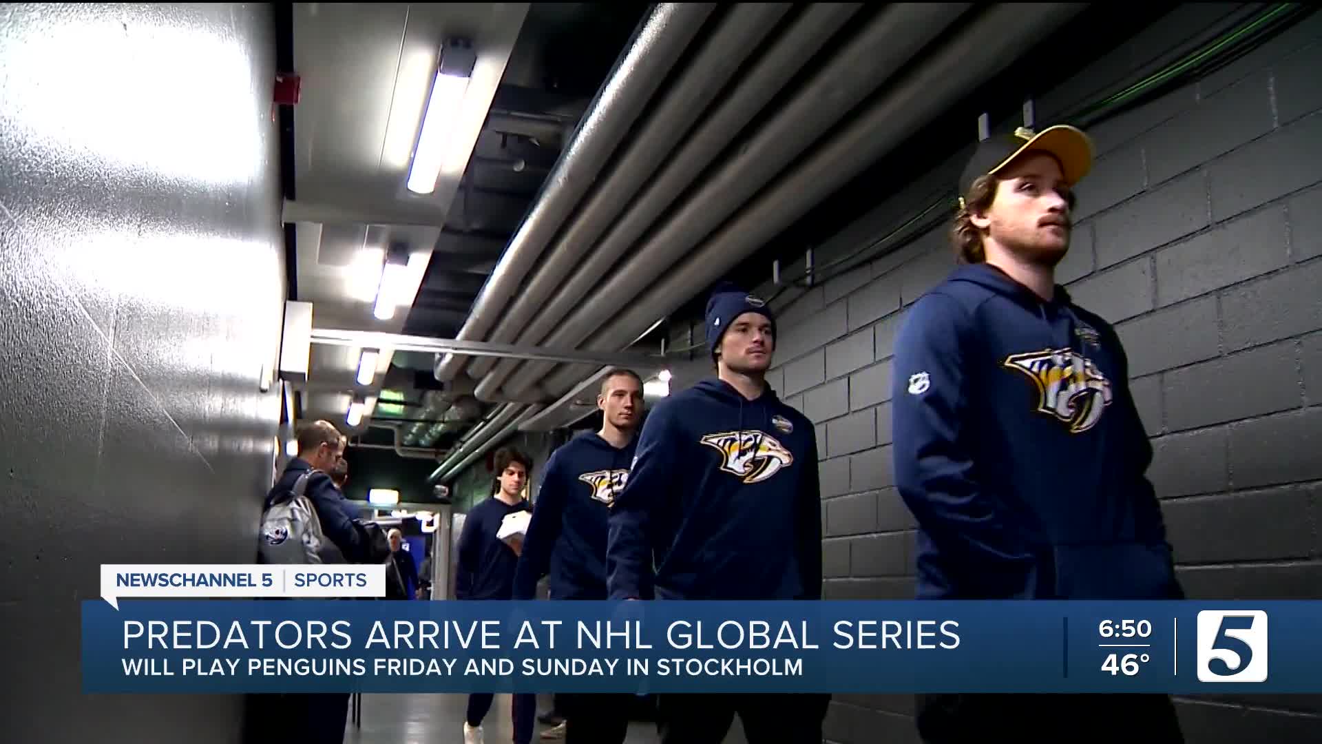 STOCKHOLM (WTVF) — The Predators arrived in Stockholm shortly after 1 p.m. on Tuesday, and players were quickly shuttled off to Avicii Arena for stretching and a light workout to get them activated after the long flight from New York City.