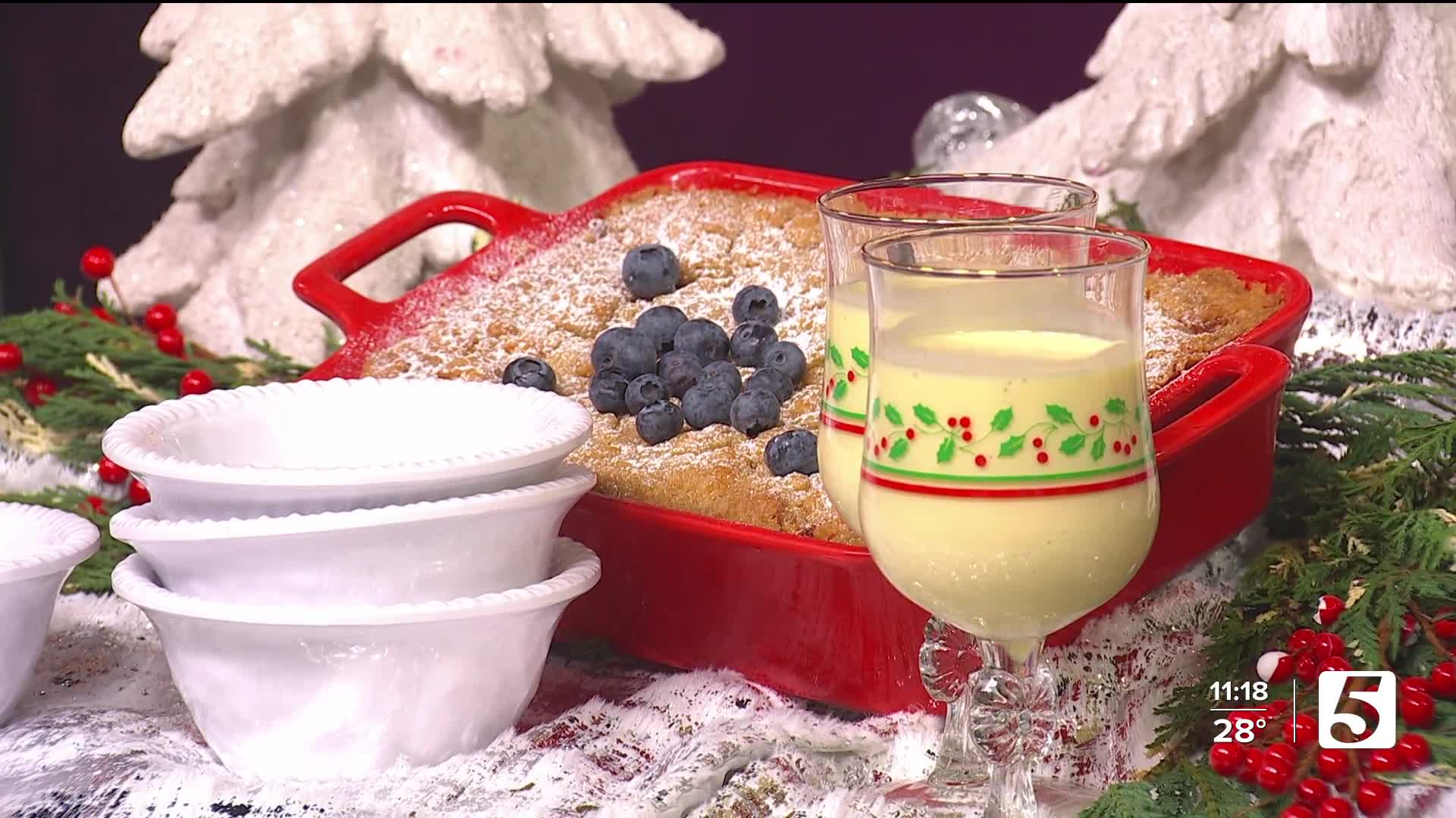 · Cool slightly, and dust with powdered sugar and fresh blueberries.