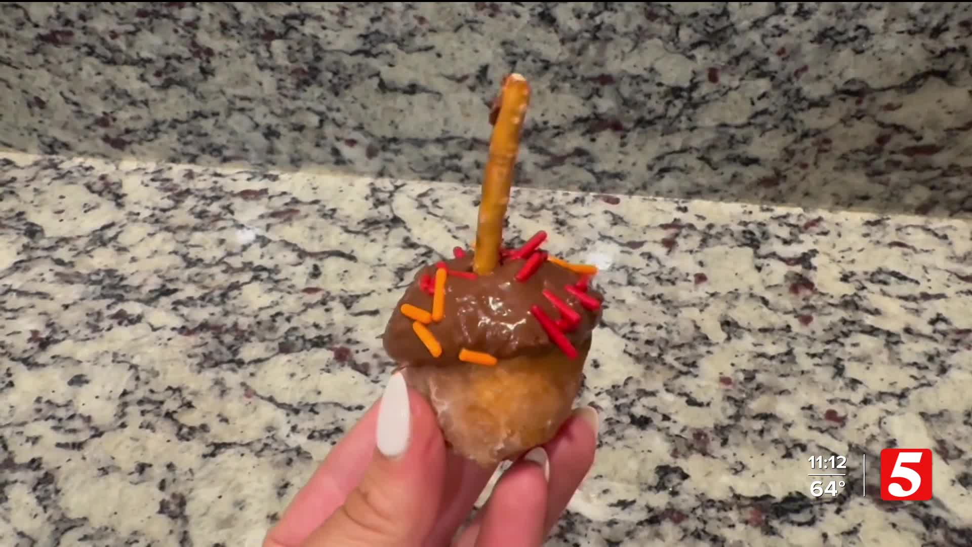 dip your doughnut holes in the nutella (to make it easier i did microwave a portion of the Nutella for a few seconds) and top with sprinkles and a pretzel stick! It's that simple