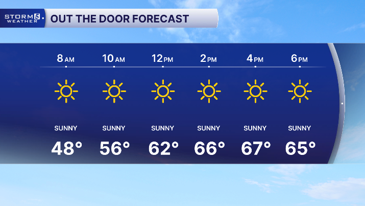 Tuesday: Sunny & Seasonal | High: 68 | N 5-15