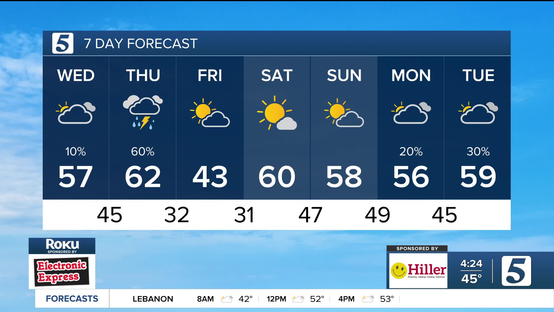 Friday turns colder, but we rebound nicely for the weekend, with highs returning to the upper 50s!