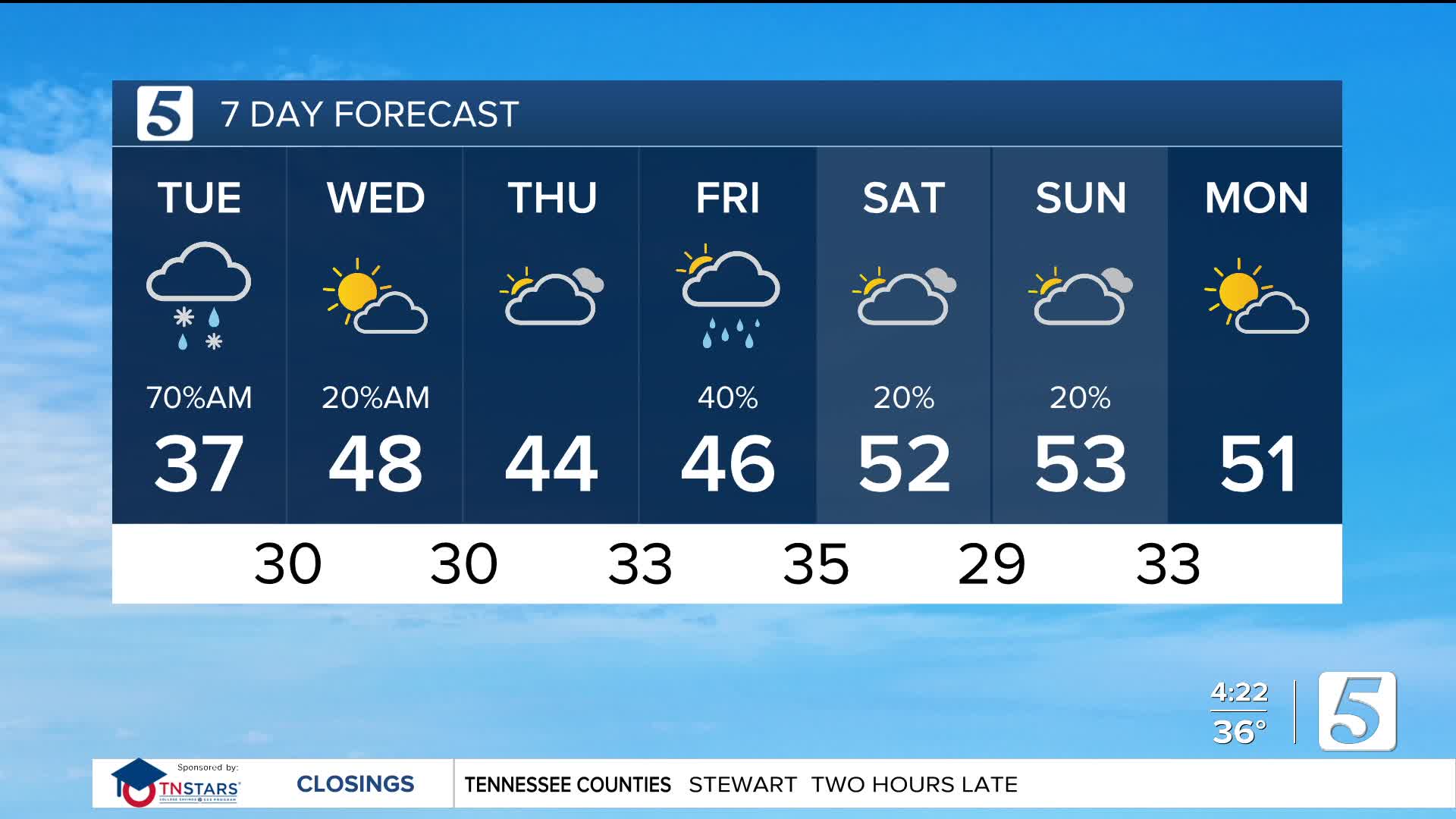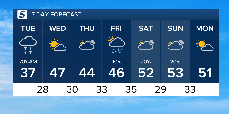Thursday night into early Friday, we’ll have another chance for showers. Some models even indicate the potential for a light wintry mix. There are still a lot of moving parts, and we will continue to fine-tune the forecast.