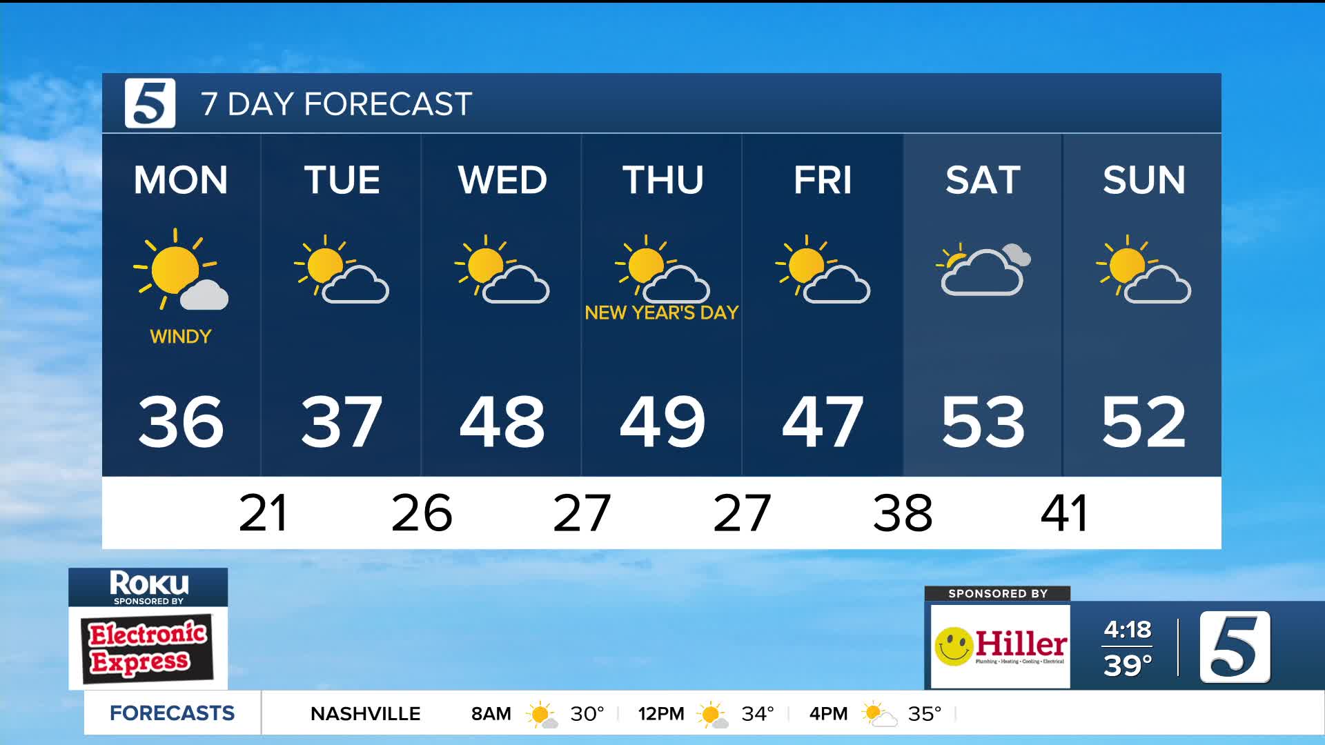 For folks in town for the Music City Bowl, it will be dry but cold. Temps