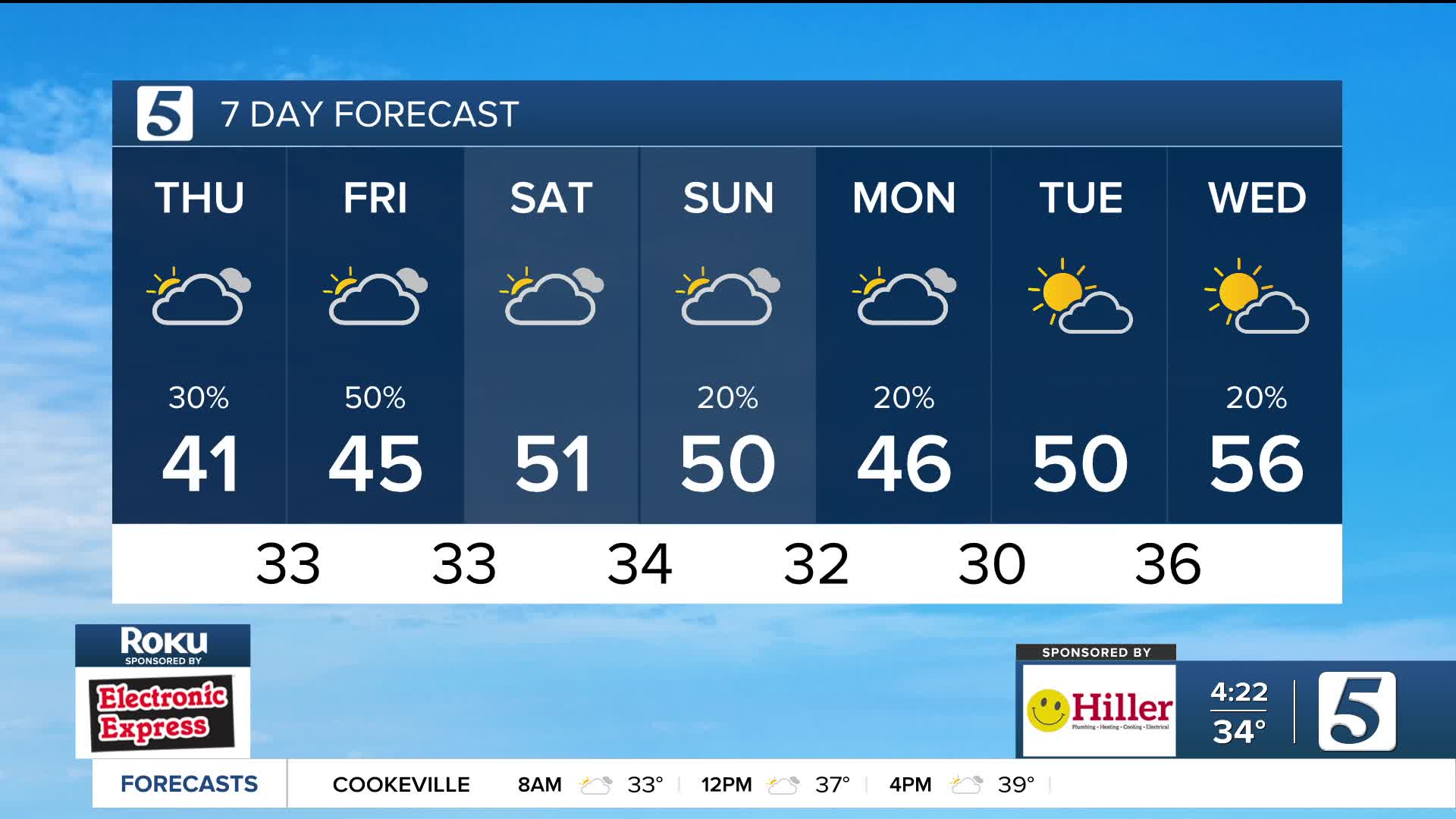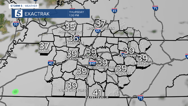 Today will be a cloudy and cold day across Middle Tennessee and Southern Kentucky, with temperatures topping out in the upper 30s to low 40s.