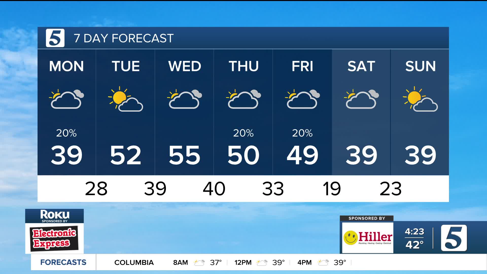 Another cloudy and cold day is ahead. Afternoon highs will struggle to reach 40 degrees, but it’ll feel more like the low to mid 30s.