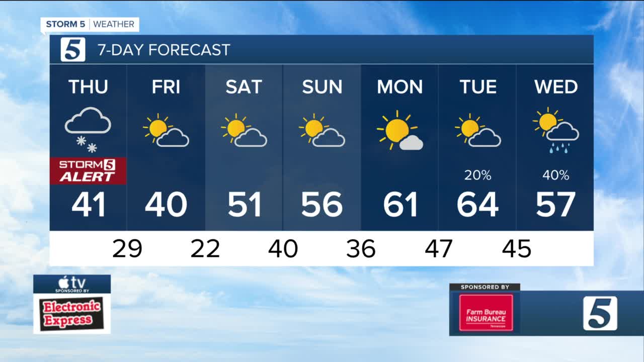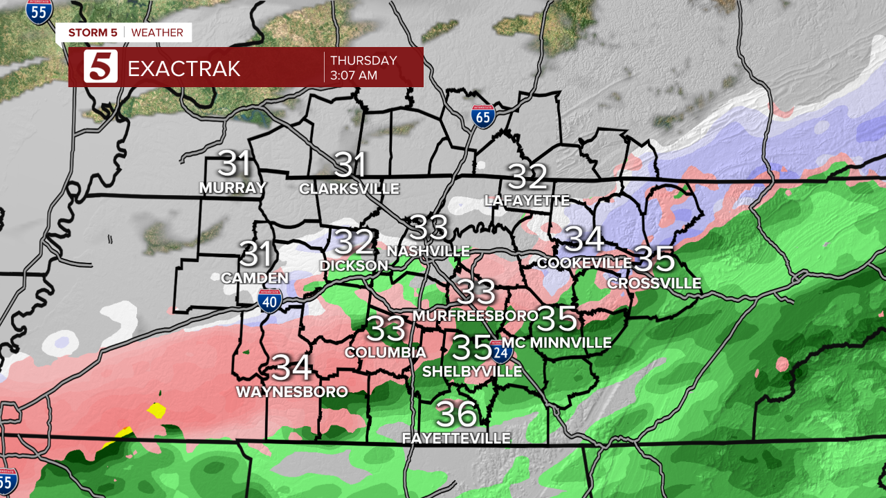 Temperatures will climb above freezing by mid-morning Thursday with a cold rain expected mainly South of I-40 early Thursday.