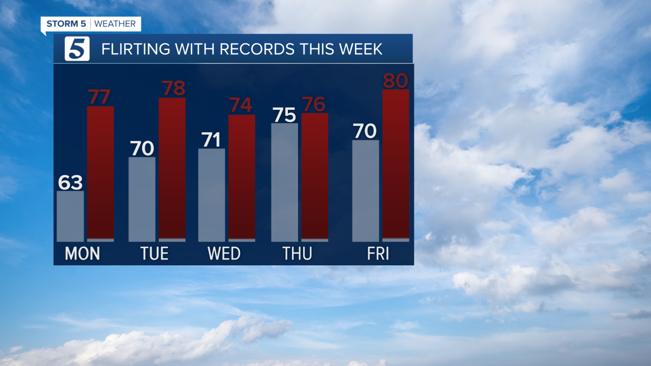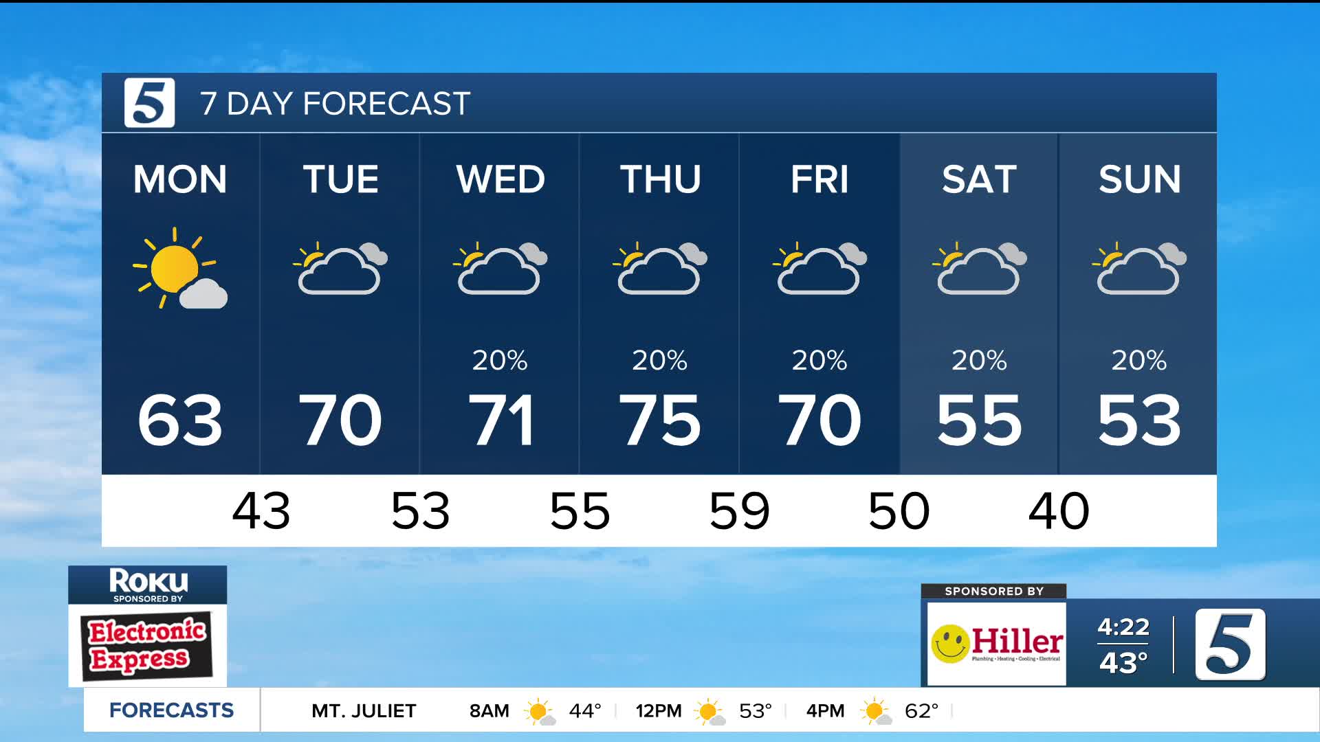 Mild weather is on the way this week. Highs will be in the 60s today then
