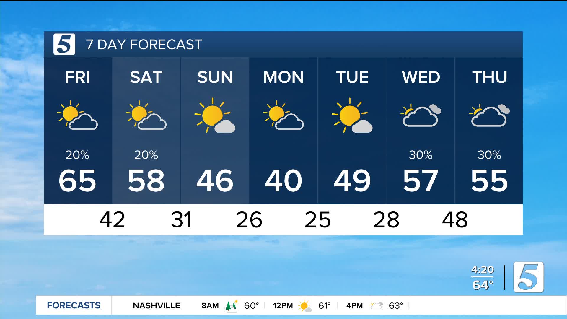Tomorrow: Partly Cloudy, AM Shower Possible South & East|