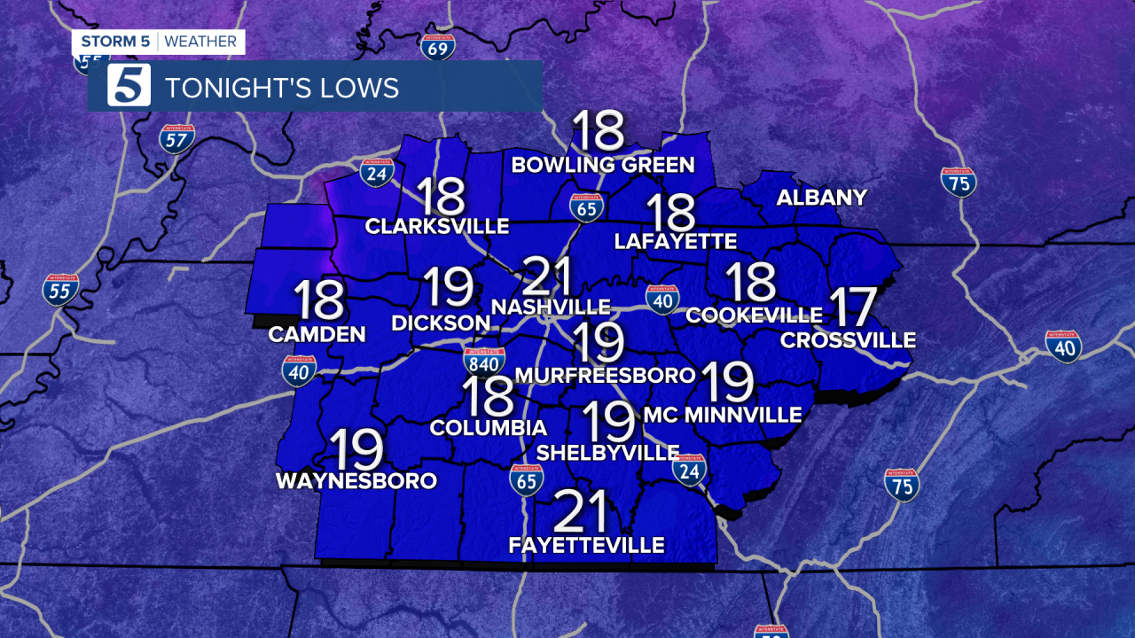 Highs will drop into the 30s today after reaching 52° in Nashville