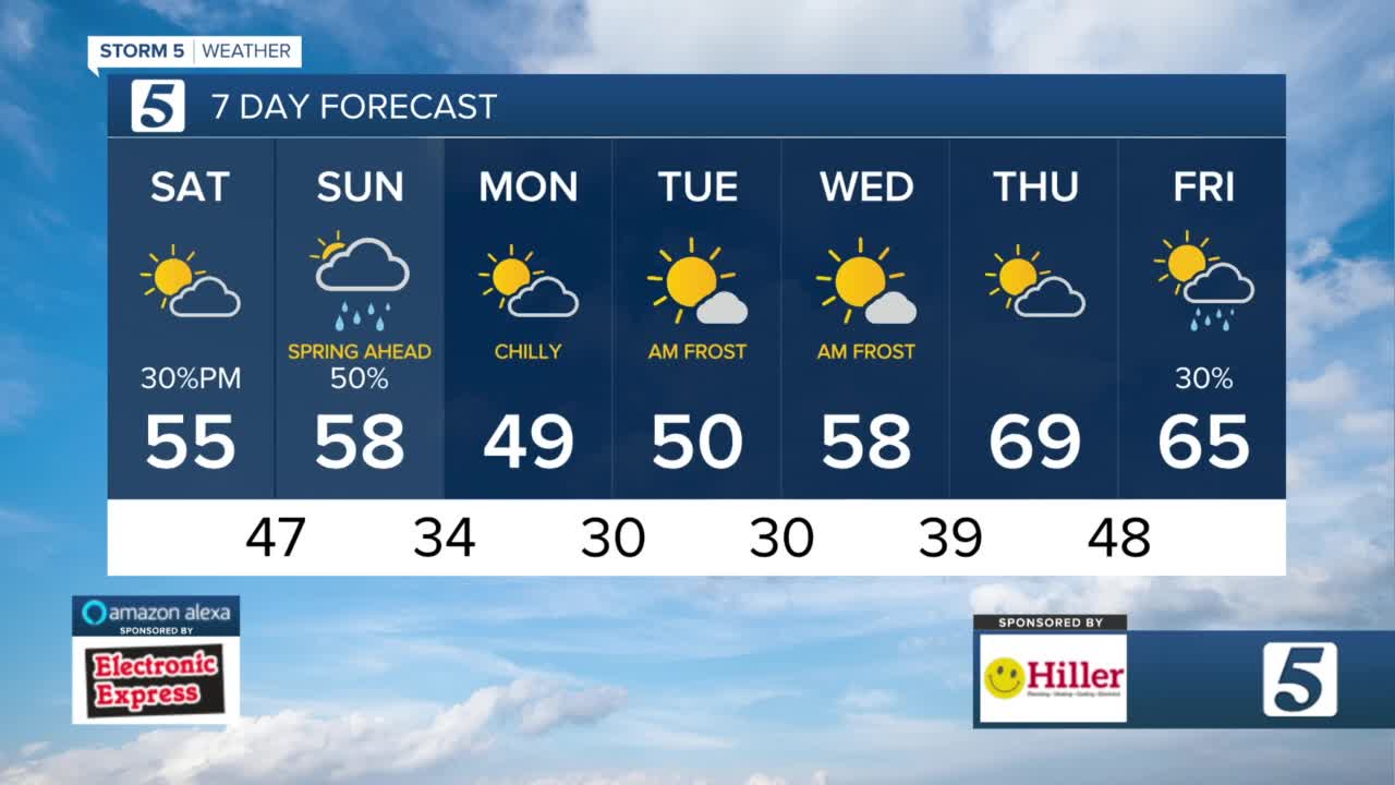 Tomorrow: Cloudy, 50% Shower Chance |High: 58| W 5-10