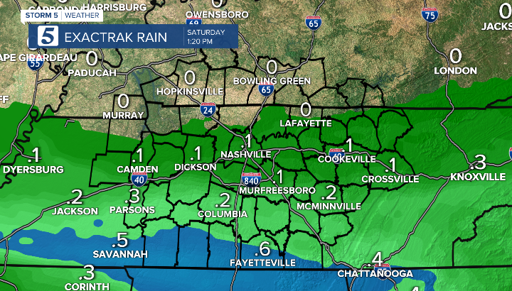 Today won’t be the brightest day, but it does come with some liquid sunshine. Rain chances increase around midday, though today’s showers are not anticipated to be widespread. Locations south of I-40 will have the best opportunity to see rain, with amounts around one-tenth of an inch, while a few spots closer to the Alabama / Tennessee state line could pick up closer to a half inch.