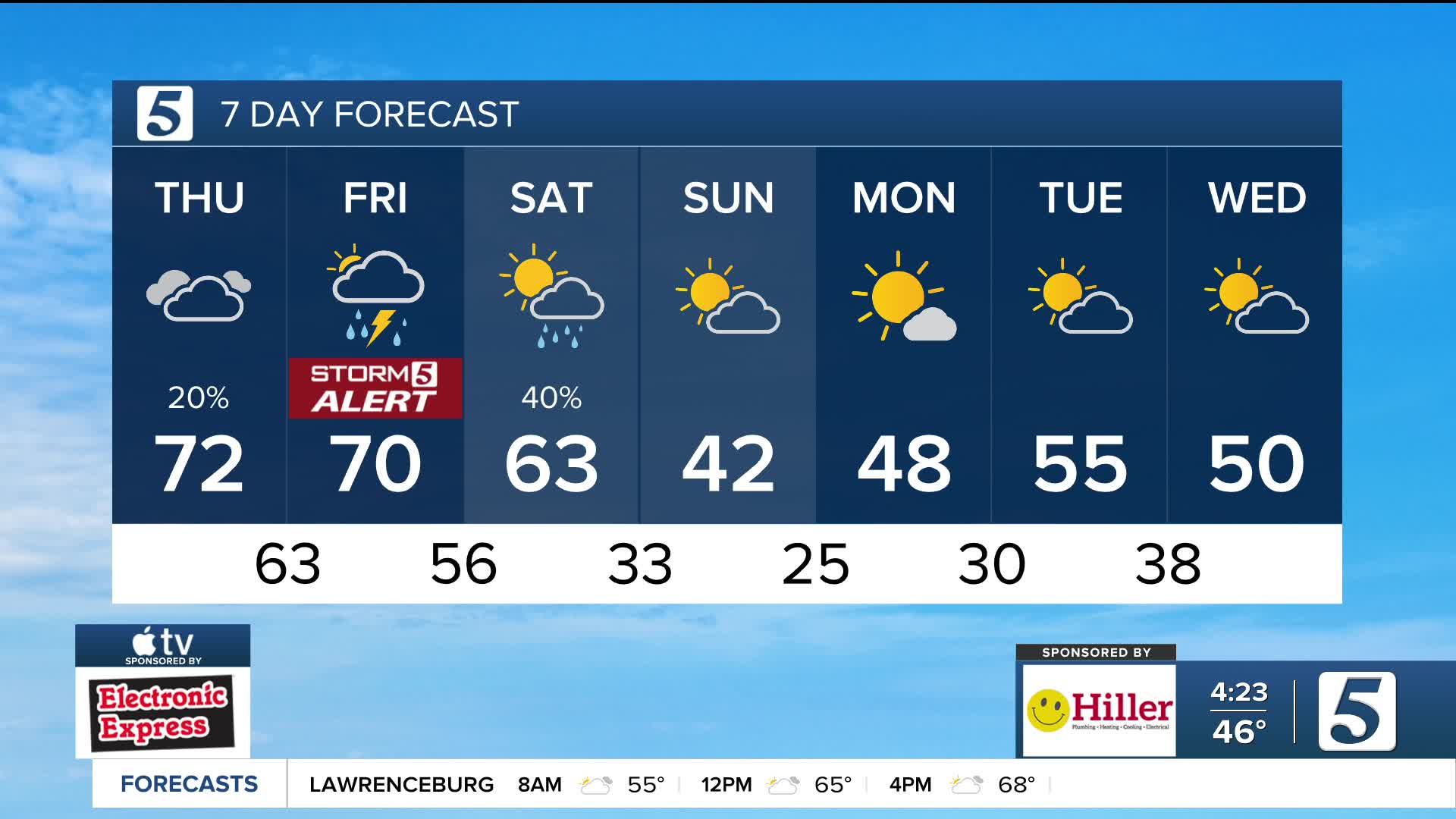 A Storm 5 Alert is in place for Friday as we track the potential for severe weather. Current projections suggest two rounds of rain and storms.