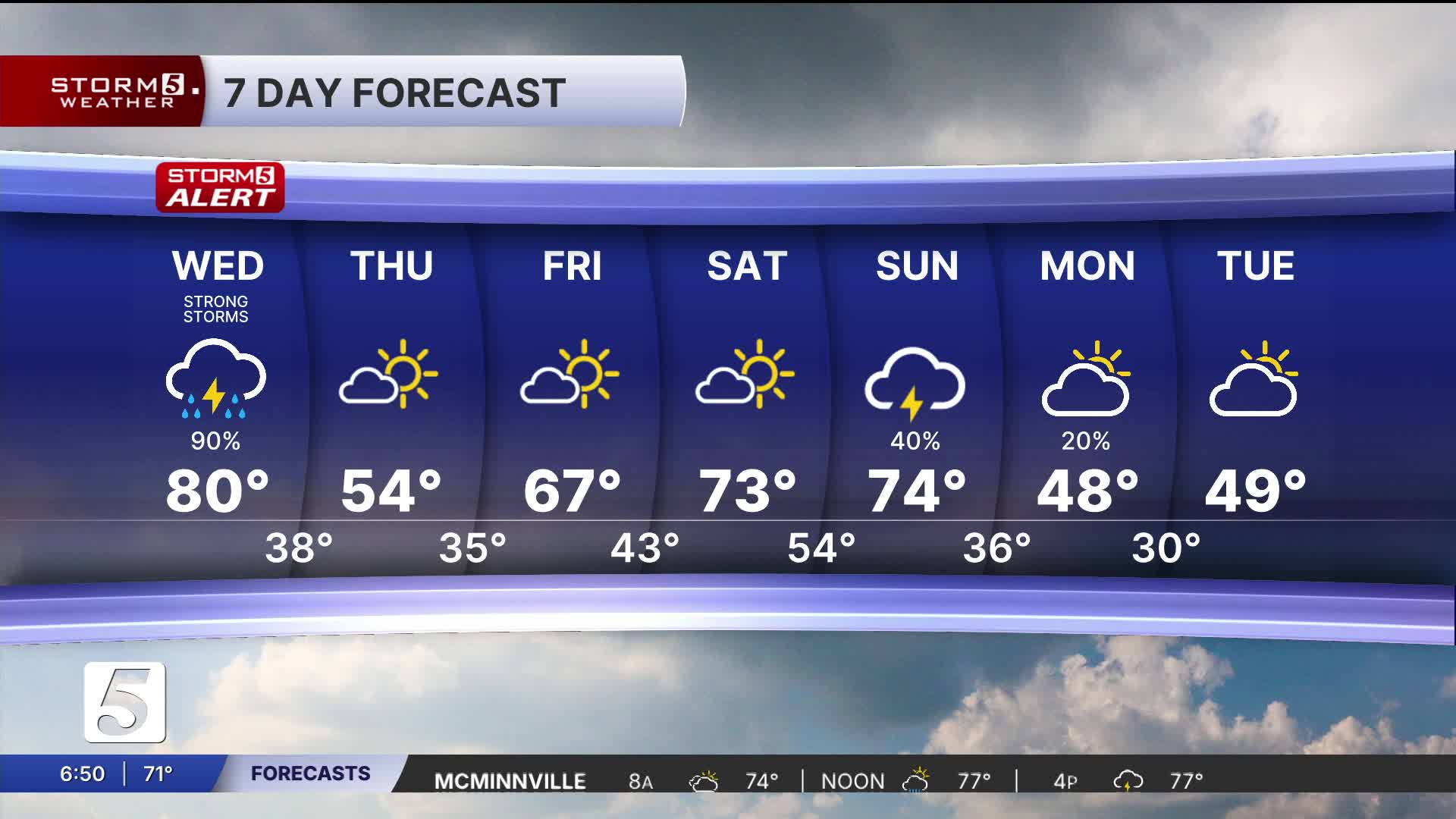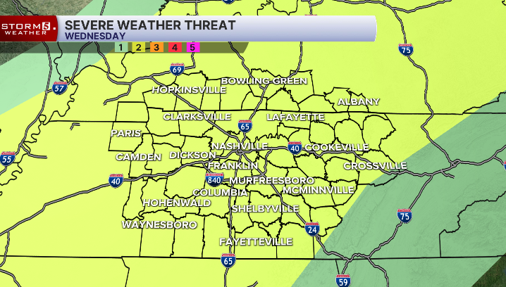 The Storm Prediction Center (SPC) has all of Middle Tennessee and Southern Kentucky under a Slight Risk (2 out of 5). This is not anticipated to be a widespread severe event. However, we look to see a handful of severe storms.