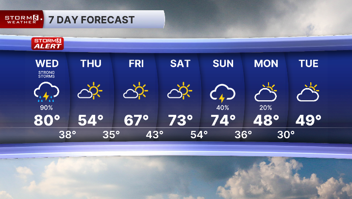 The front will bring cooler air for Thursday, with highs in the mid-50s. Another cold front will move through Sunday evening, bringing a chilly start to next week. Yes, we are talking about morning lows in the upper 20s to low 30s.