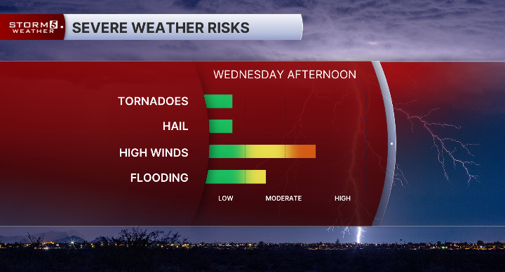 The main concerns include damaging wind gusts, straight-line winds, and localized flooding. The hail and tornado threat is low, but not zero.