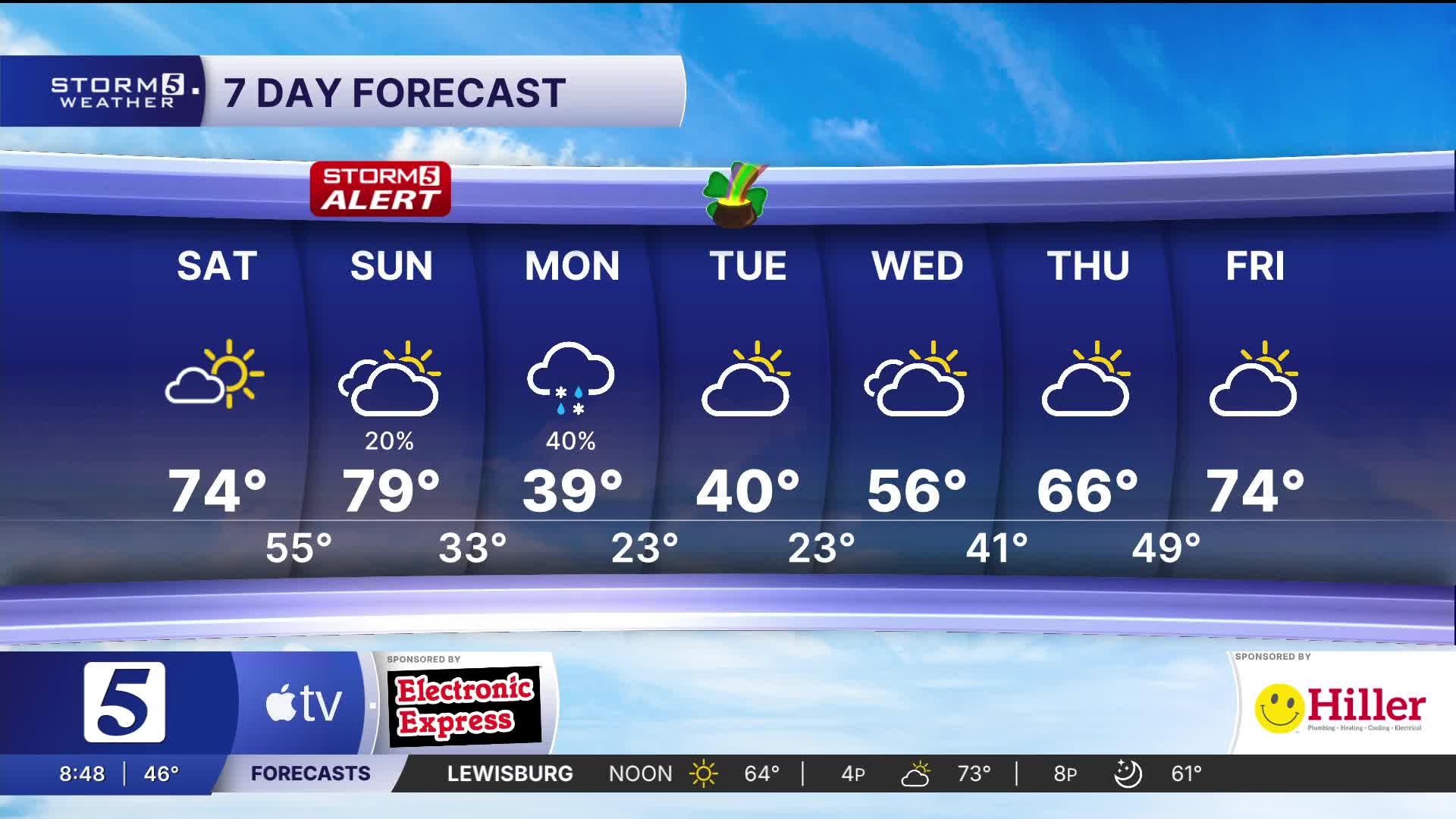 The cold front will arrive after sunset, bringing with it the chance for severe weather. A Storm 5 Alert will begin at 7 PM going through 2 AM. This will more than likely be a major wind event, but a quick spin-up tornado can't be ruled out.