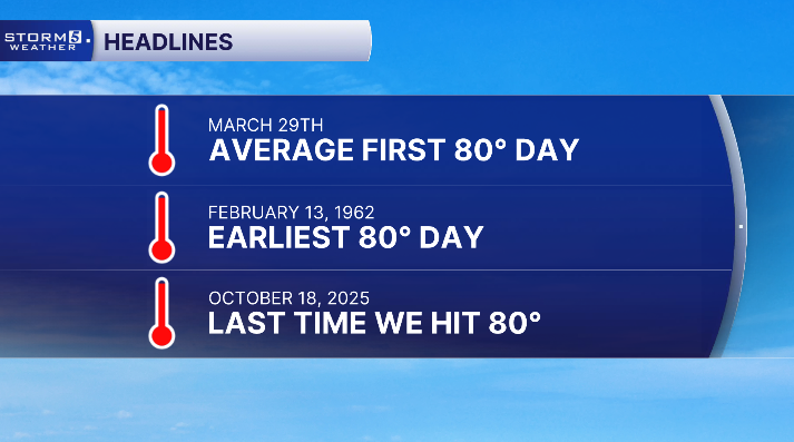 The warmth continues… and today could be the first 80° day we’ve had since October 2025.