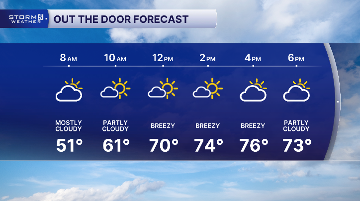 Tuesday, we get a small break from our storm chances, with mostly dry conditions, breezy winds, and a warm afternoon with highs in the upper 70s to low 80s.