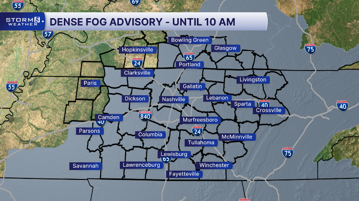 Talk about a foggy start... Some locations are as dense as peanut butter! Due to the widespread fog, we have a Dense Fog Advisory for most of Middle Tennessee and Southern Kentucky until 10 AM.