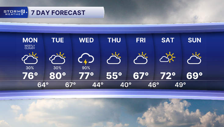 Another strong system will push a cold front into the region on Wednesday. It brings our highest chance for storms this week, prompting a STORM 5 WEATHER ALERT. A few storms could become severe, with the main concern being strong winds.